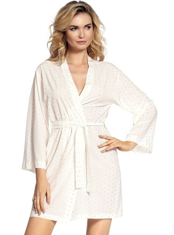 Bata de señora en viscosa de alta calidad 94% con elastano. Corto, atado a la cintura, con mangas 3/4. Modelo decorado con un llamativo motivo de corazón.