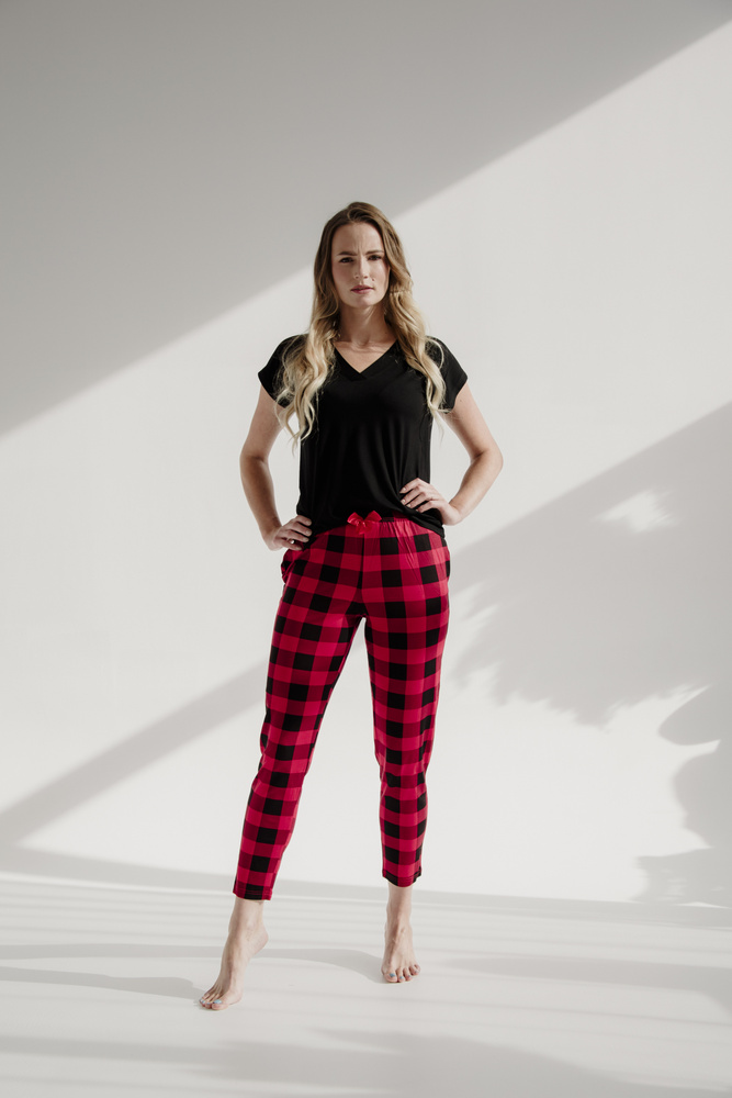 Cómodo pantalón de mujer para dormir, confeccionado en viscosa de alta calidad en tejido de cuadros.