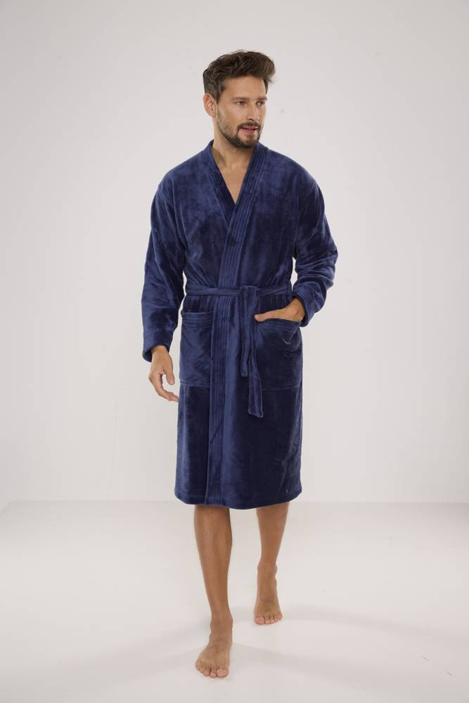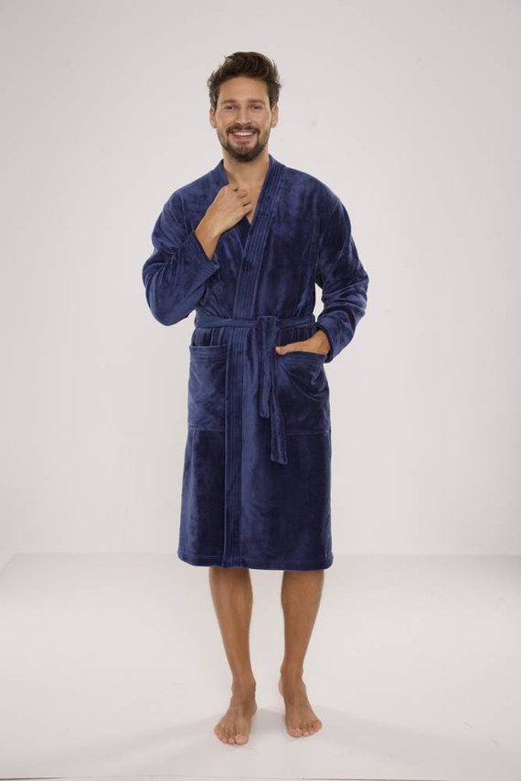 Albornoz largo de punto suave para hombre. Anudado a la cintura, bolsillos exteriores en las caderas, aplique cosido a la altura del pecho. Agradable al tacto, garantiza la comodidad de uso. La principal ventaja de este modelo es el tejido de felpa, cálido y agradable al tacto, que absorbe perfectamente el agua.