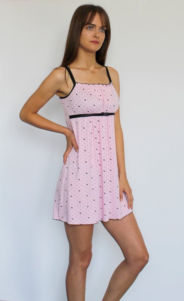 Camisa de señora decorada con un lazo, en viscosa de alta calidad. Tirantes estrechos y ajustables. Cortar bajo el busto con una cinta de raso.