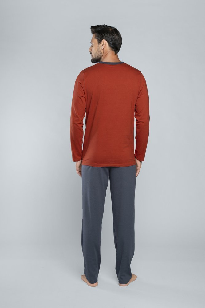 Lion Pijama de manga larga para hombre, pantalón Moda Italiana - rojo/grafito
