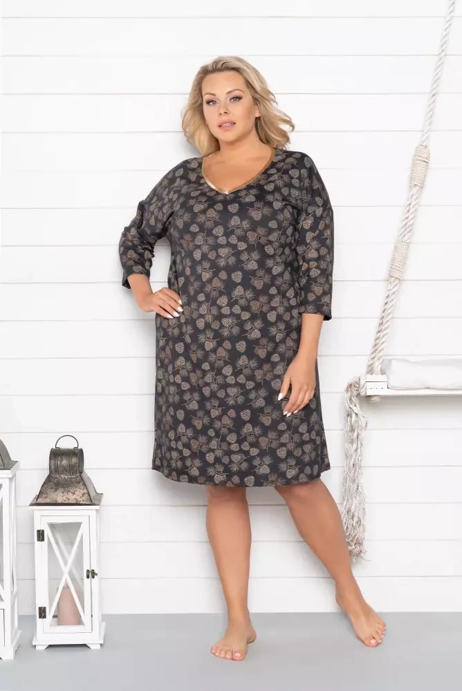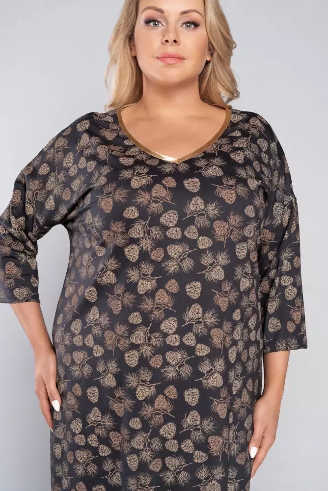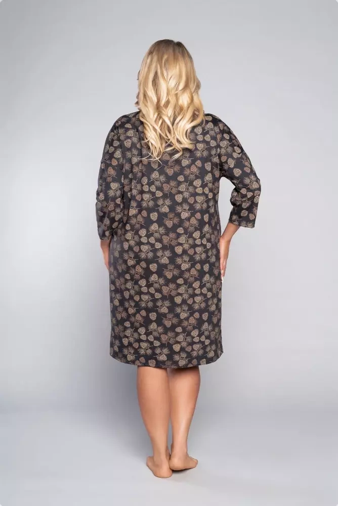 La camisa de mujer Pinnia está cosida con viscosa de la más alta calidad, natural y muy suave. El corte holgado y muy cómodo es garantía de confort durante el sueño, tan importante para nuestro cuerpo. La bella y contrastada combinación de tonos grafito y dorado atrae todas las miradas y confiere al modelo una elegancia extraordinaria. Su disponibilidad hasta la talla XXXL es una ventaja añadida.