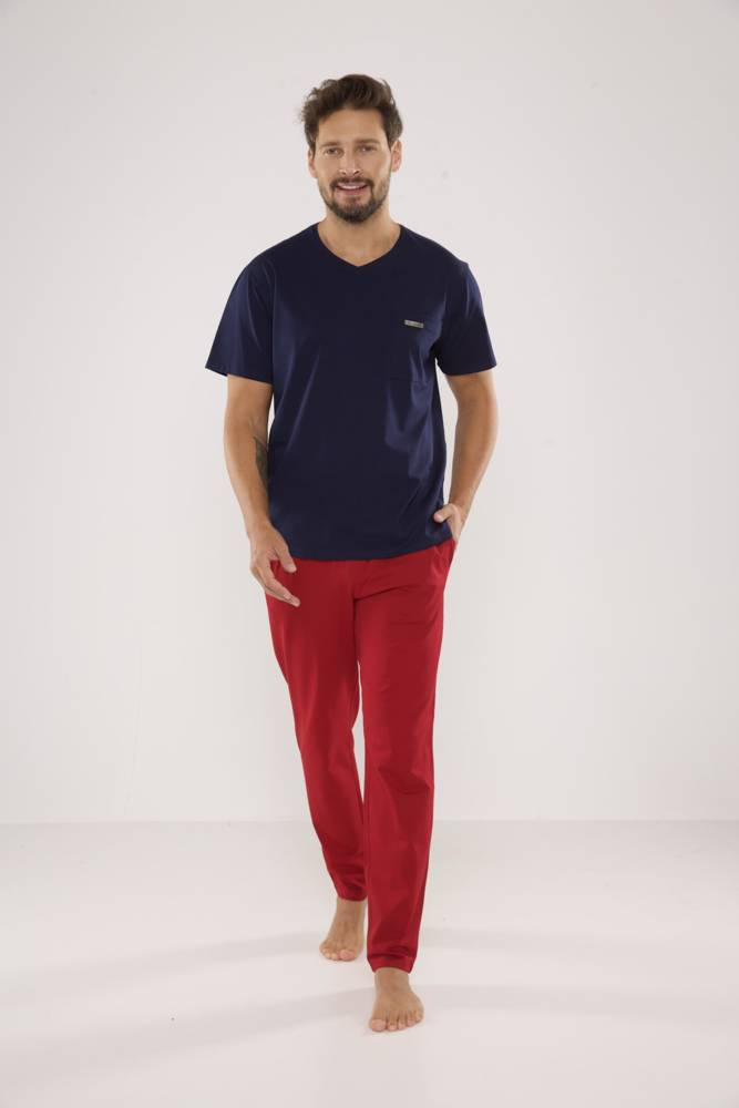 624 Kevin Forex Pijama de hombre - azul marino-bordeos