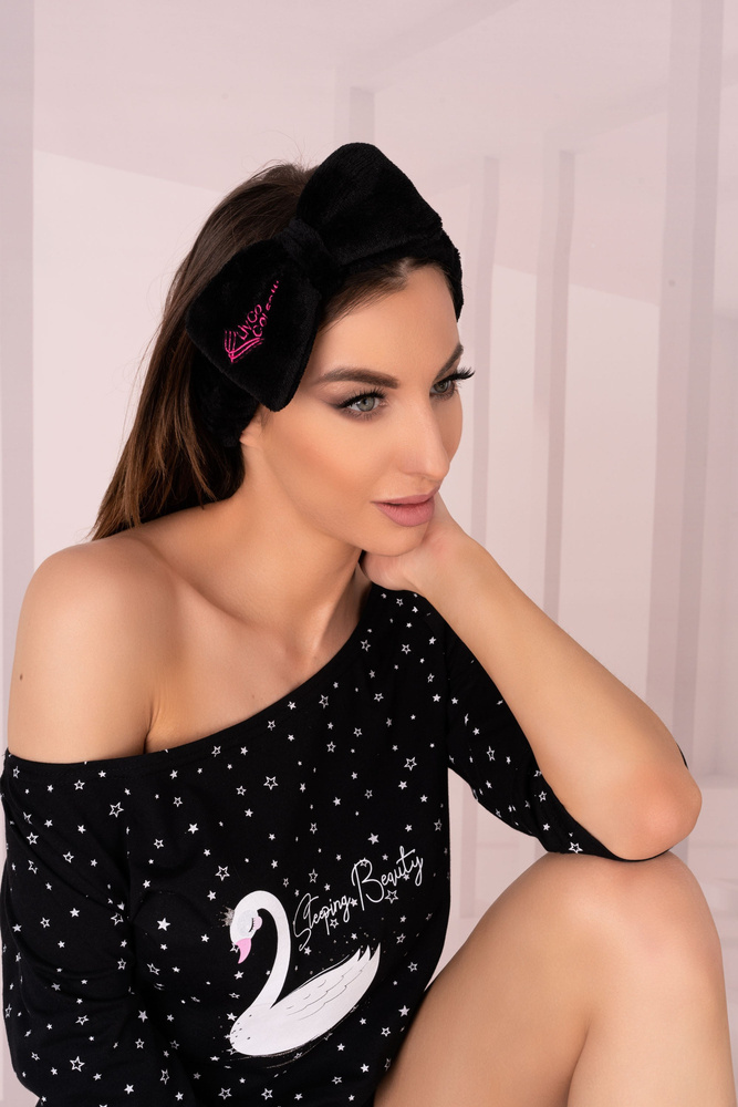 Diadema negra con lazo.