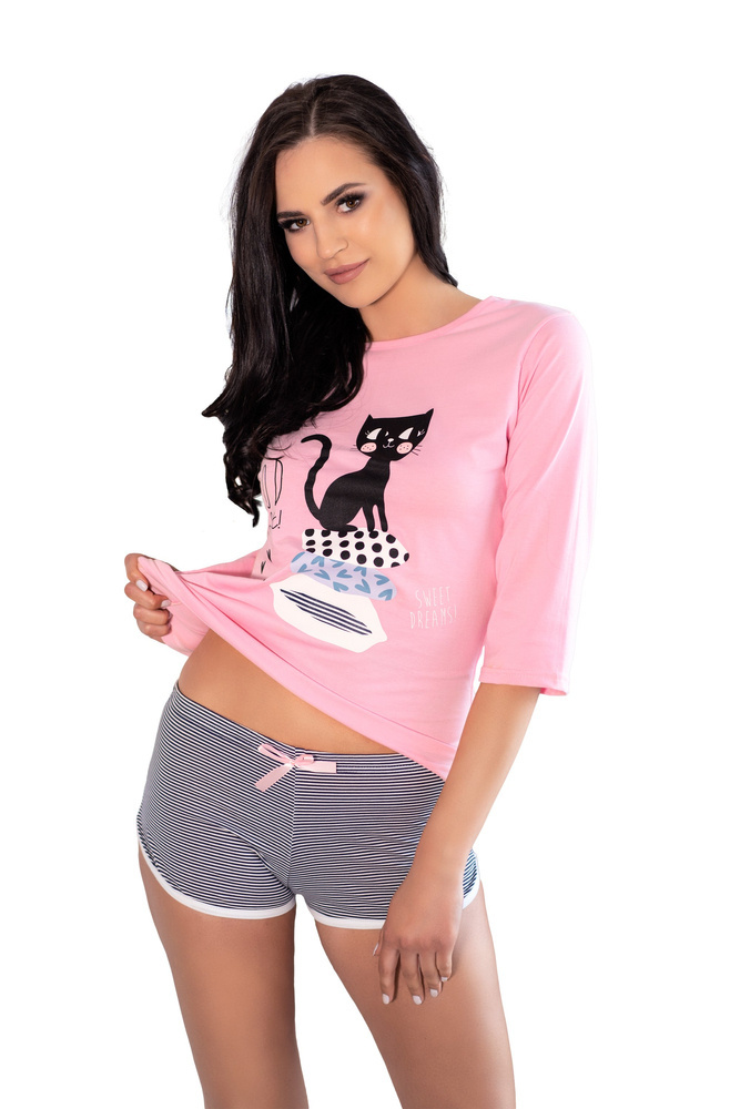 - Pijama de señoramanga 3/4 pantalón corto 100% algodón