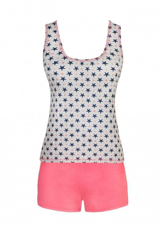Cómodo pijama de algodón con camiseta de tirantes y pantalón corto.