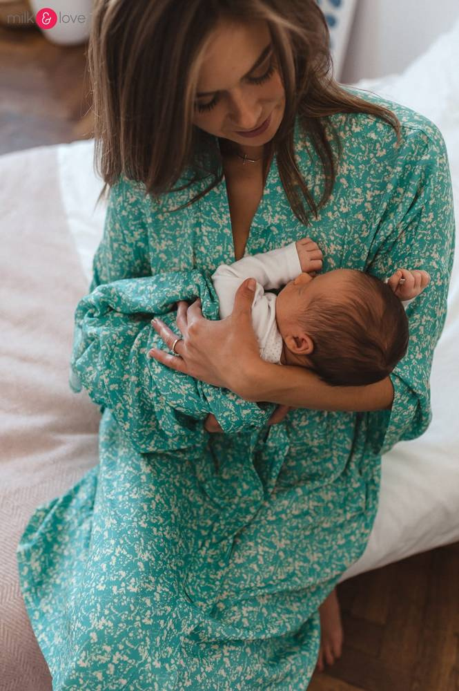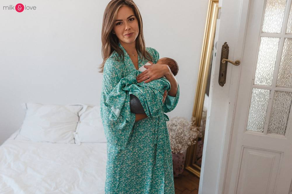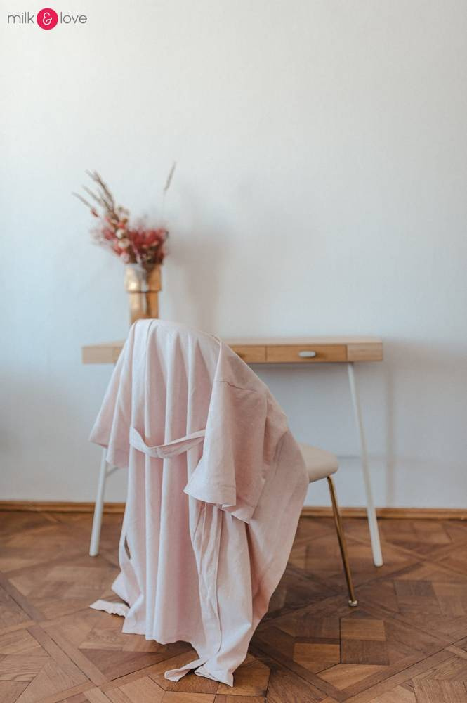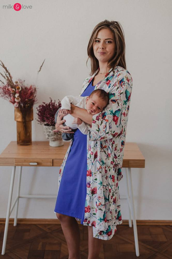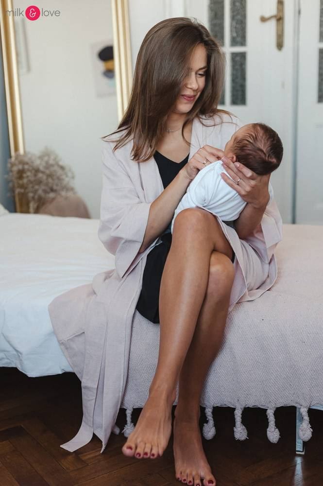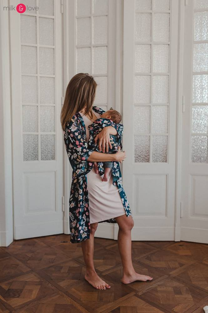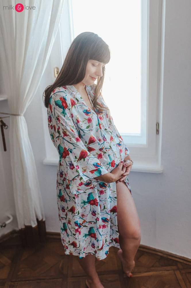 Szlafrok został zaprojektowany z myślą o mamach, dlatego jest nieco dłuższy, abyś spokojnie okryła nim ciążowy brzuszek. Po porodzie bez skrępowania b będziesz mogła spacerować po szpitalnym korytarzu lub na leżąco nakarmiła maluszka w połogu. Posiada kieszenie na niezbędne drobiazgi i pasek do regulowania szerokości.