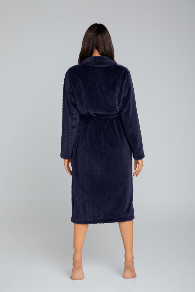 La elegante bata de mujer Bona es nuestra sugerencia para las noches y mañanas frescas. Maravillosamente suave y extremadamente cálido, le proporcionará comodidad y una relajación excepcional. Corte clásico acabado con cuello chal y prácticos bolsillos. El lazo en la cintura acentúa la silueta. Modelo realizado en tejido de punto bi polar con un interesante y original motivo a cuadros en 3D.
