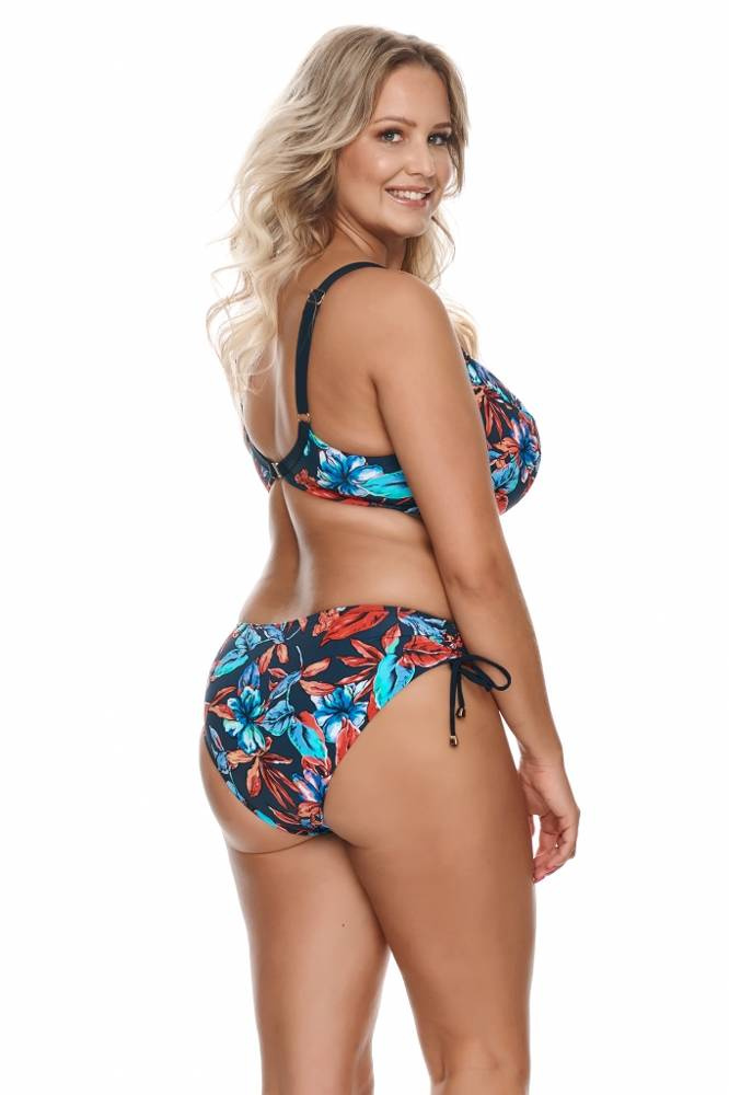Bañador de colores vivos y bonitos. Sujetador de punto suave decorado con un motivo floral. Gracias a los cortes de modelado y a los aros, sujeta perfectamente el busto. Tirantes ajustables y no extraíbles. La anchura de la correa y el tipo de cierre se adaptan a la talla del bañador. Una delicada decoración entre las copas añade encanto al conjunto. Ideal para mujeres con más volumen.
