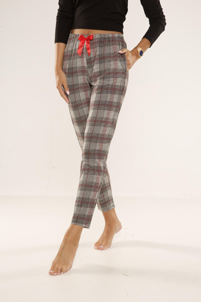 Cómodo pantalón de mujer para dormir, confeccionado en viscosa de alta calidad en tejido de cuadros.