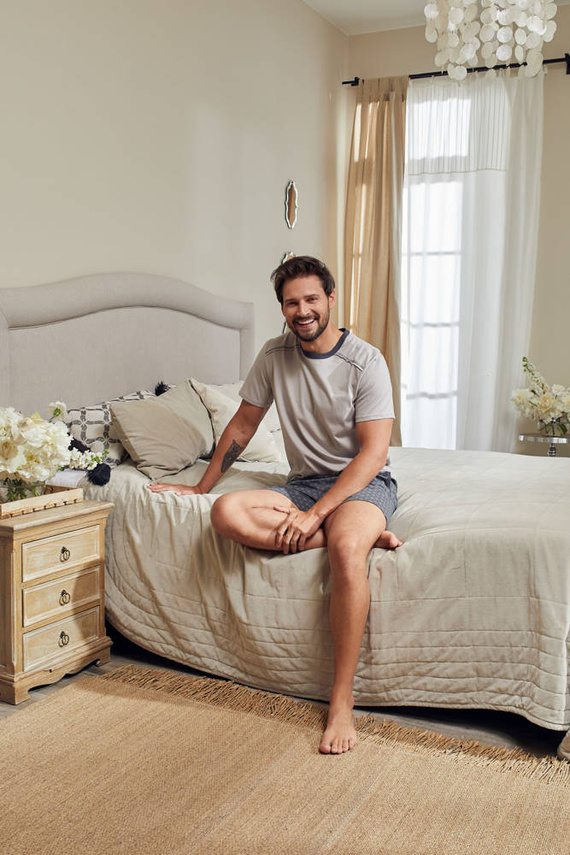 Pijamas de hombre versátiles que impresionan por su sencillez y minimalismo. Es la combinación perfecta de colores clásicos y tranquilos con un toque de locura en forma de rombo. Un elemento interesante son las costuras en colores contrastados, que añaden un toque moderno.