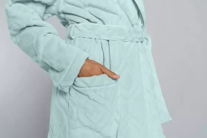Цей халат стане найкращим супутником прохолодних вечорів і ранків - він огортає теплом, дозволяючи повністю розслабитисяя. Модель має великий шалевий комір, який надає образу класичної елегантності, а також робить халат ще комфортнішим і теплішим.