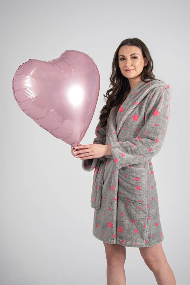 Albornoz de corte recto con capucha para mujer FOREX. Largo hasta la rodilla, bolsillos laterales, cintura con lazo para cinturón. El albornoz se adapta perfectamente a la forma del cuerpo, es extremadamente suave y ligero, de suave tejido de punto. Envolverse en él después del baño es un placer!