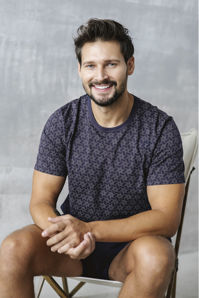 Extremadamente agradable sobre la piel gracias al uso de punto de algodón de gran confort. El corte clásico será muy cómodo para cualquier hombre. El pijama dispone de prácticos bolsillos en los pantalones. El top estampado y el pantalón corto azul marino forman un bonito conjunto clásico.