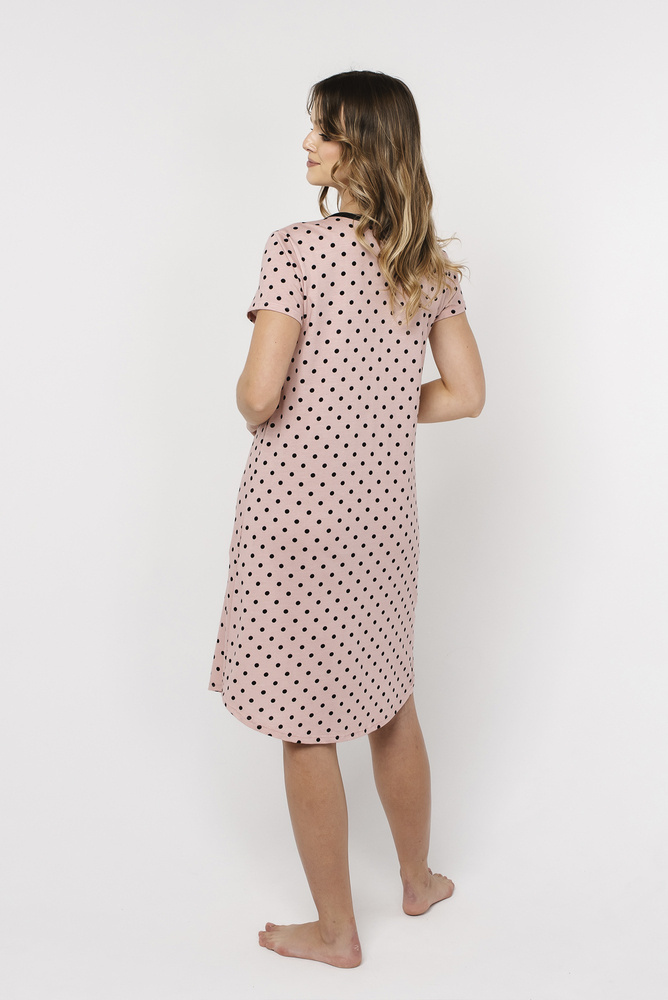 La camisa de guisantes negro empolvado es un corte atemporal combinado con un jersey de algodón de la mejor calidad. Cómoda y envolviendo agradablemente el cuerpo, la ropa de dormir recuerda la moda de los años 50 y 60.