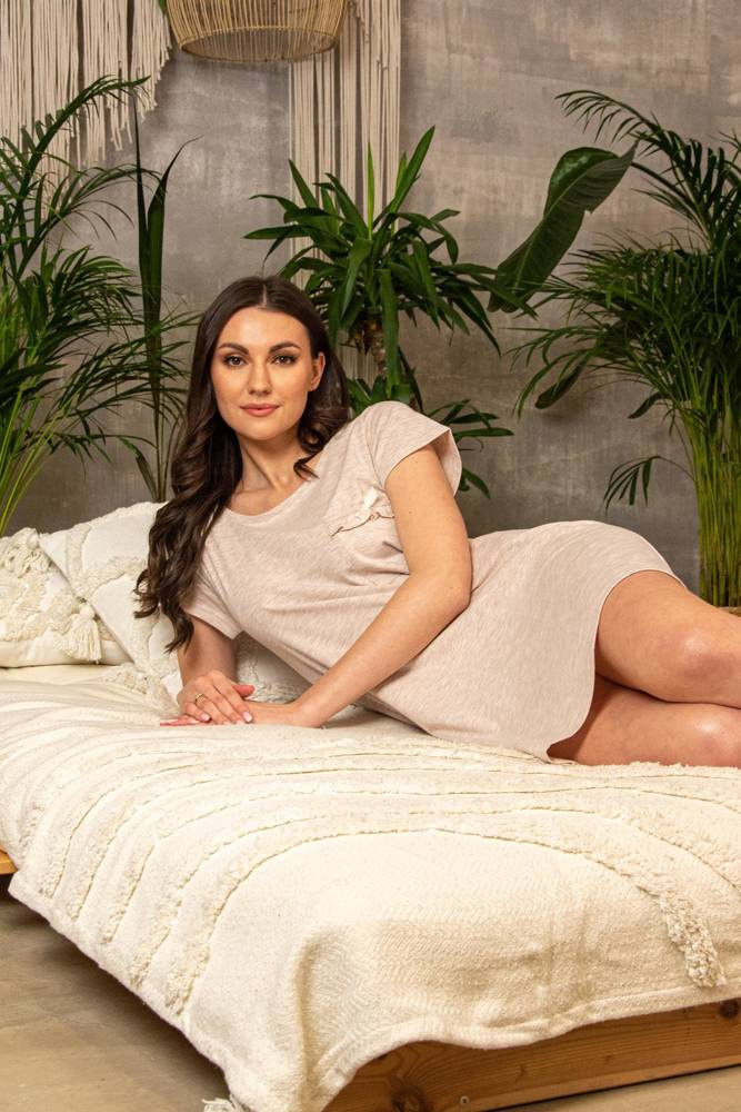 Camisa de mujer de algodón de gran calidad y agradable al tacto. Camiseta de manga corta. Escote semicircular. Dlongitud antes de la rodilla. Corte muy cómodo, suavemente ajustado al cuerpo. Atraerá a las mujeres amantes de la suavidad y la libertad.