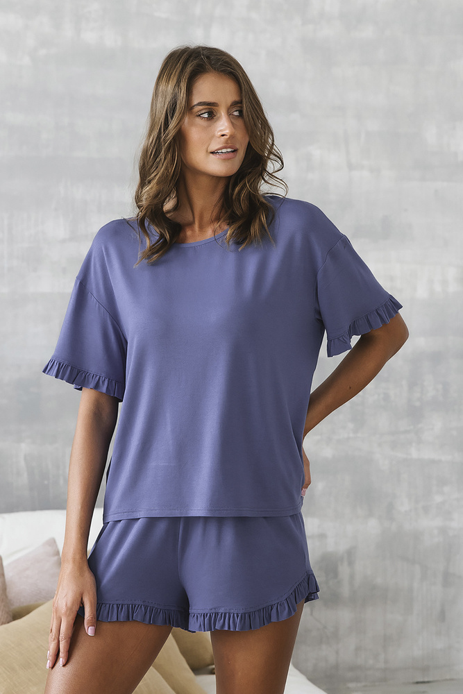 Style Pijama de manga corta para mujer, pantalón corto Italian Fashion - azul