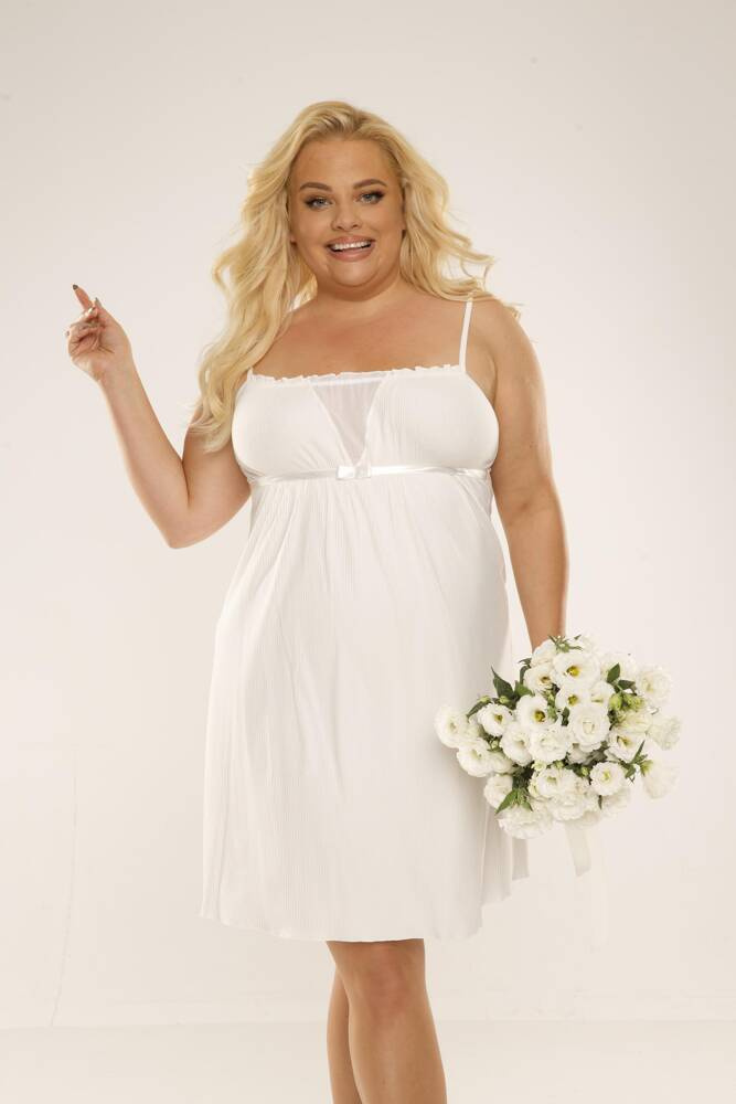 Camisón extremadamente cómodo. Tirantes estrechos y ajustables, ligero pliegue en el busto. Cinta de raso bajo el pecho. Longitud antes de la rodilla. Se ha confeccionado en viscosa de alta calidad que, combinada con su cómodo corte, proporciona la máxima comodidad. El elástico en el busto permite la lactancia materna.