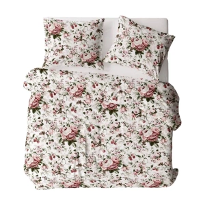 5496 B Ropa de cama de algodón blanco con flores de color rosa acuarela Naturalis- Detexpol