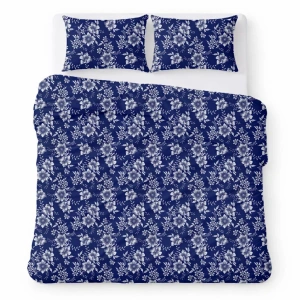 Juego de ropa de cama algodón crepé transpirable fácil cuidado navy blue with white flowers