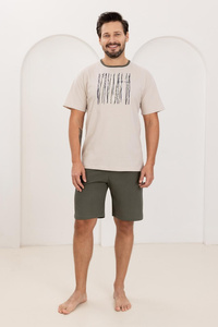 Pijama de hombre 500 Regina beige - 100% algodón, manga corta + pantalón corto, ligero y cómodo para el verano