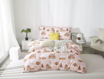 Gingerhouse Navidad microsatin ropa de cama casas de pan de jengibre rosa I25 Spod Igły i Nitki - suave, lisa y duradera