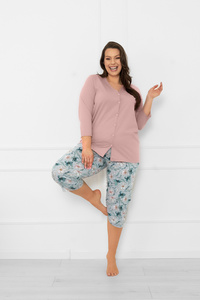 Pijama de señora Sekwoja - algodón, manga 3/4 y pantalón, con botones Moda Italiana