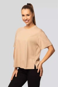 Camiseta Urban beige de algodón para mujer - Manga corta, corte clásico, a la moda con aberturas | Material de alta calidad, elasticidad