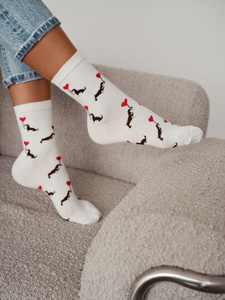 0200-201 Mujeres calcetines Milena Dachshunds Valentine crudo-algodón, corazones, tamaño 37-41