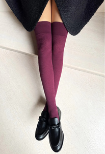 Calcetines hasta la rodilla Laura Veneziana de microfibra capuchina, rayas anchas, ribete no prensado