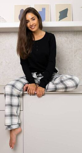 Pulia Pijama de manga larga para mujer, pantalón largo Moda Italiana - melange/estampado