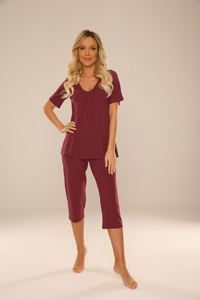 878 Dahlia Pijama de señora De Lafense - viscosa, manga corta, pantalón 3/4 - burdeos